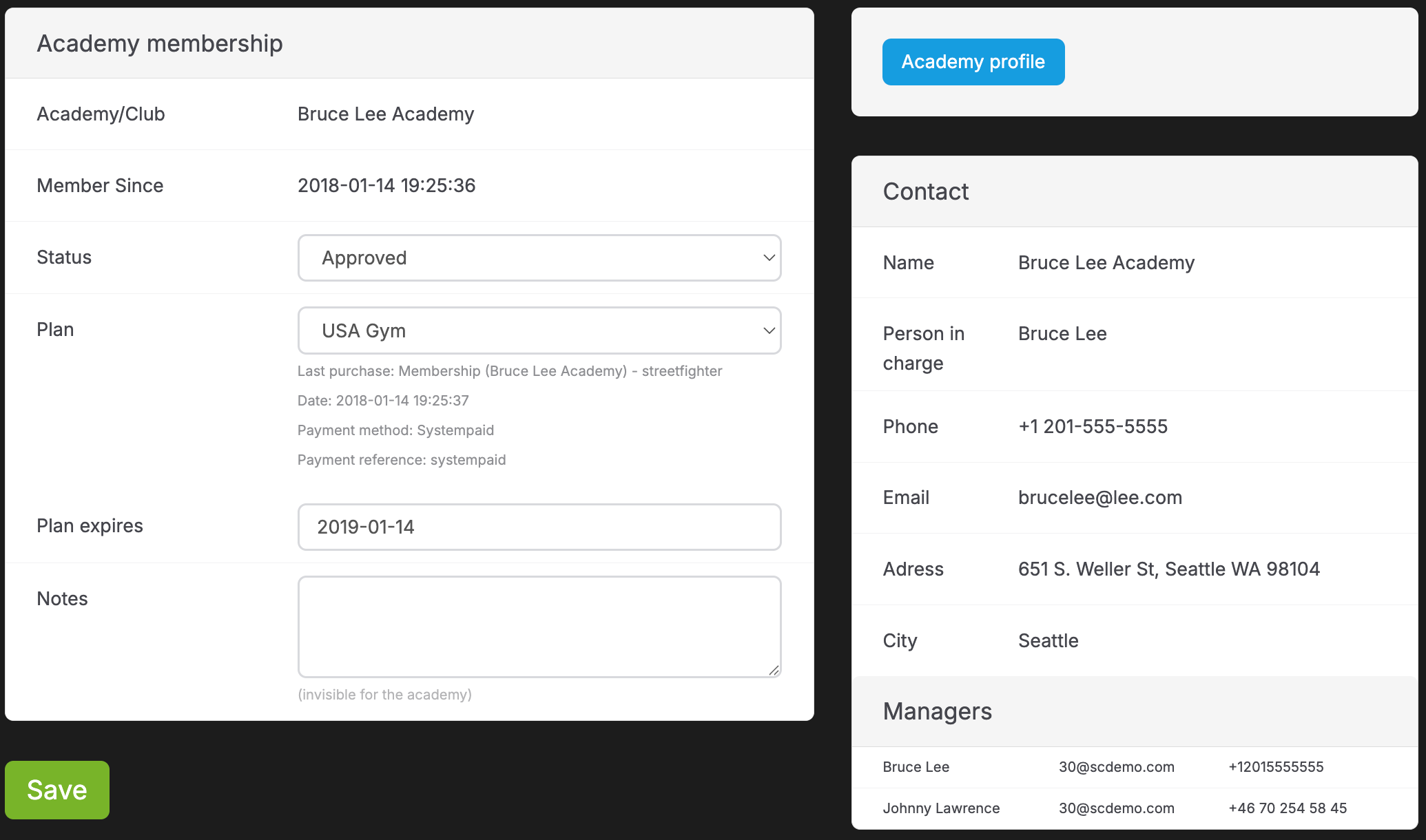 Set up your different membership plans here. Do you want to charge your academies but individual memberships should be free? No problem, it is very flexible and you can combine as you like and as many as you choose with our premium solution.