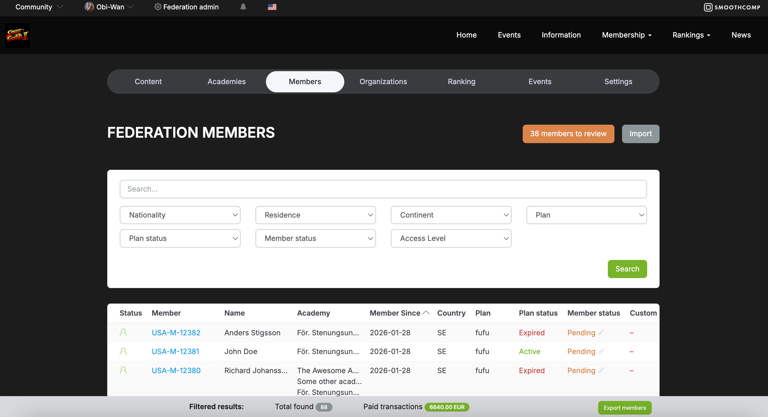 Make sure you go over these settings thoroughly so that members and academies can register as smooth as possible but that the federations still maintains the level of control it desires.