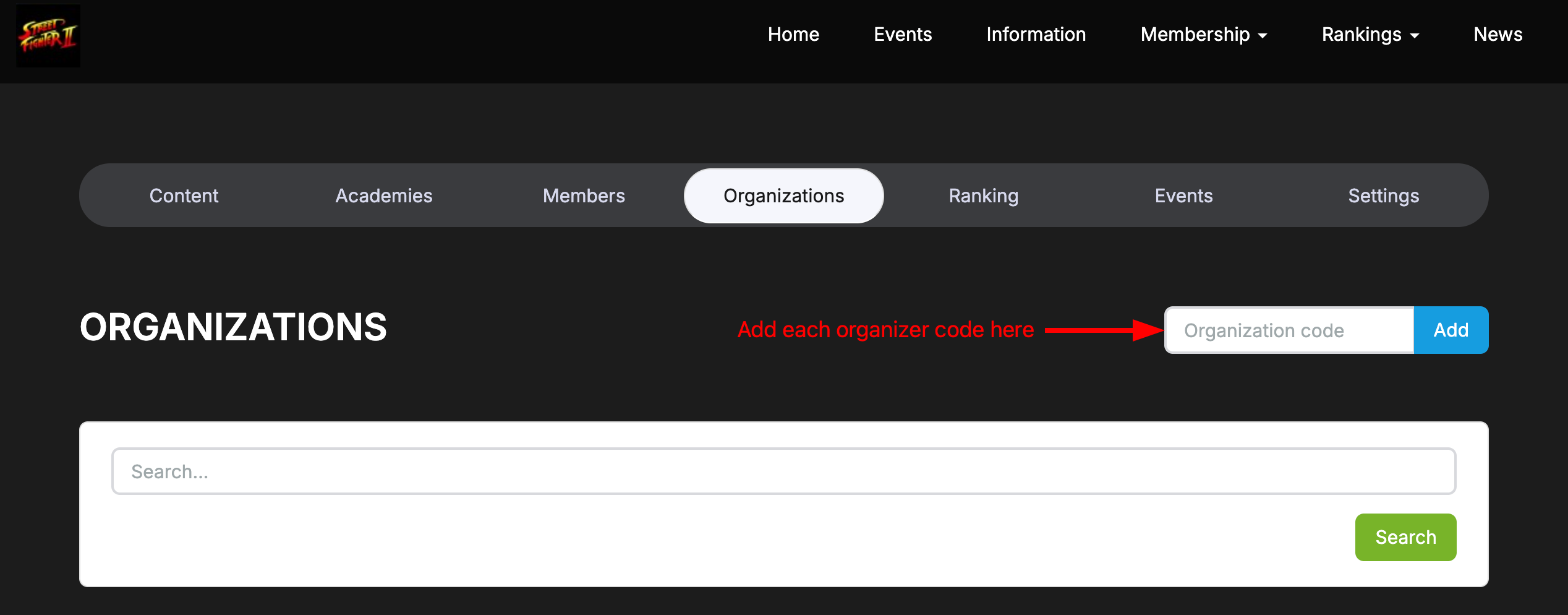 Now its time to connect your organizer(s) to your federation and populate your start page with events.