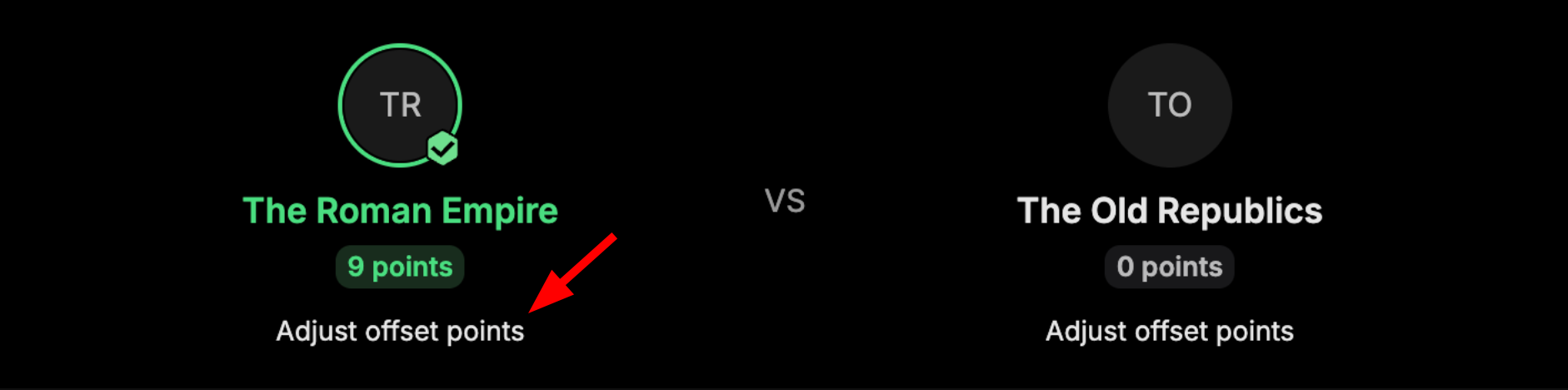 For team matches, it's now possible to change or "offset" the points within the match.