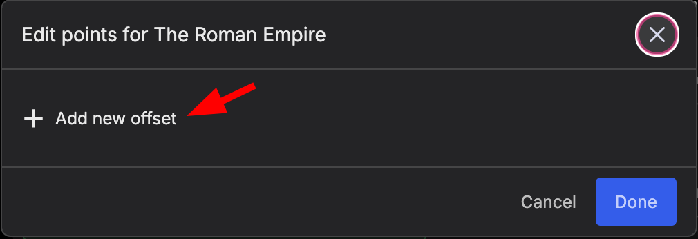 Click Adjust offset points on the team which points you want to offset. That will bring up a window. To add an offset, simply click Add new offset.