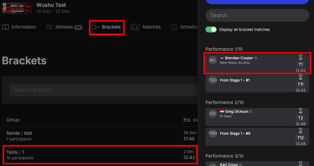 ... from Brackets by clicking the name of the bracket and then the match...